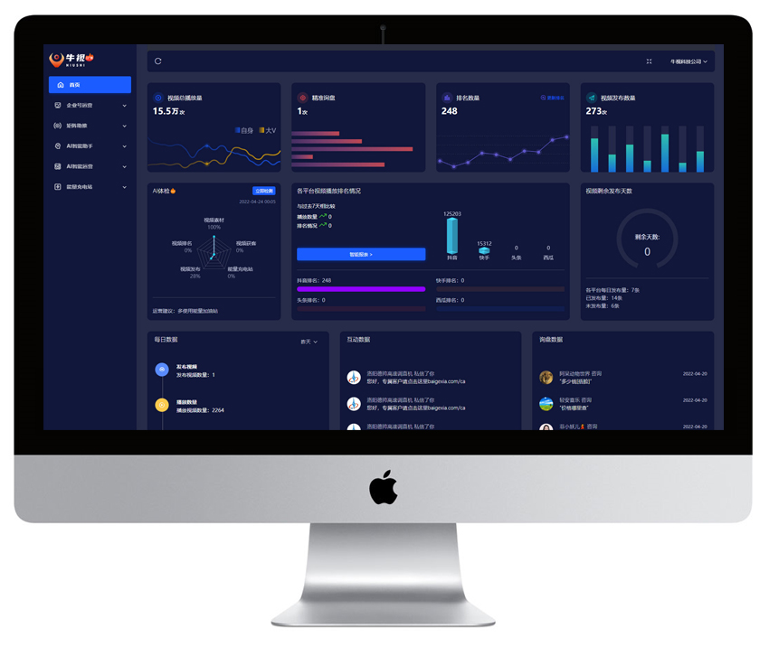 基于企业蓝V账户的企业号运营功能,通过此功能,可以实现一个后台对多个账户的管理,在发布视频的同时,可对账户上的客户主动留资进行收集并以通知给客户。